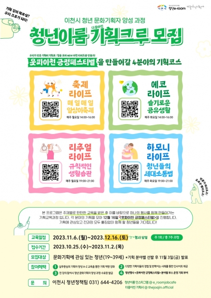 문화기획 A~Z까지 다 알려줌 이천시, 청년 문화기획자 양성 과정 수강생 모집