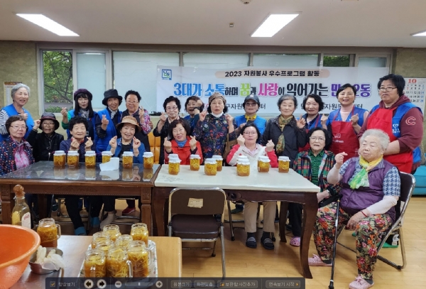 포레시안1-2아파트경로당 임봉화 회장은 “경로당에서 종일 시간을 보내면 지루하고 심심할 때가 있는데 만수2동 자원봉사센터에서 경로당을 찾아와서 수제청도 함께 만들고 대화도 나누면서 시간을 보낼 수 있어서 너무 좋다”고 말했다.