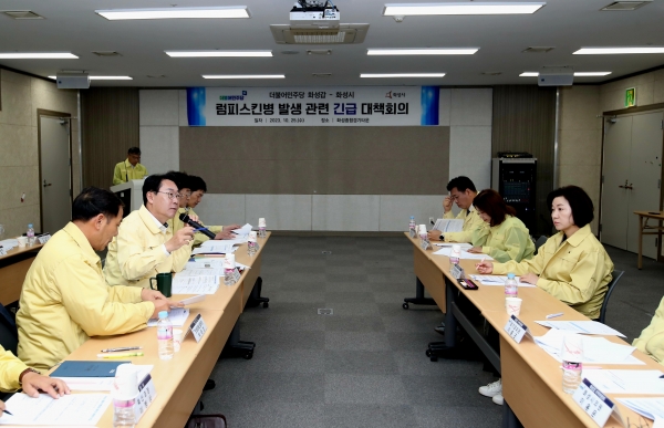[금요저널] 25일 송옥주 지역위원장과 정명근 화성시장을 비롯한 도의원, 시의원, 그리고 관계 공무원은 화성종합경기타운에서 럼피스킨병 확산에 따른 긴급 대책회의를 진행했다.