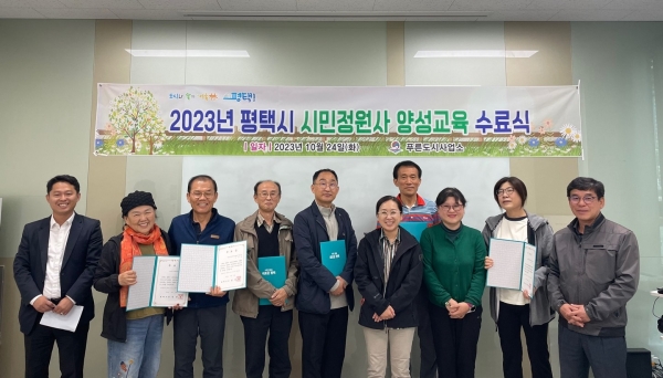 [금요저널] 평택시 푸른도시사업소에서는 지난 24일 ‘2023년 평택시민정원사 양성 교육 심화 과정 수료식’을 배다리도서관에서 개최했다.