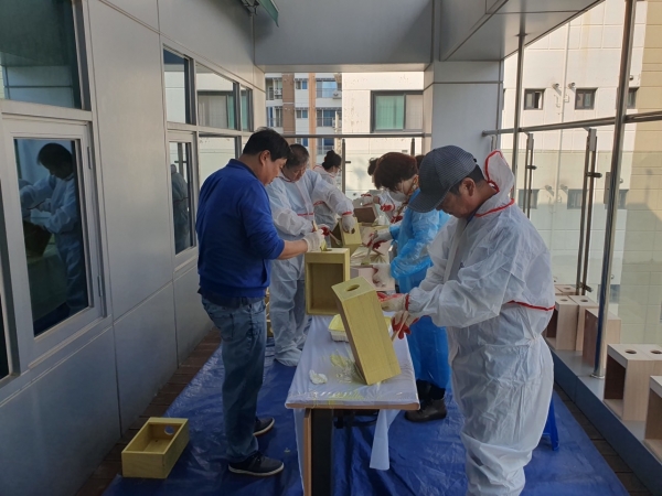 새롭게 디자인된 폐건전지 수거함은 심미성을 고려해 목재로 제작됐으며 목수인 지역 주민의 재능기부와 통장자율회의 협조를 통해 최소한의 예산을 활용했다.