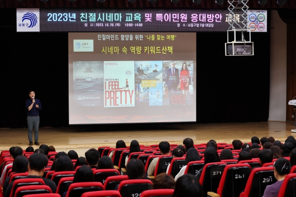 [금요저널] 인천시 남동구는 최근 구청 대강당에서 공직자 400여명을 대상으로 ‘친절 시네마 교육 및 특이민원 대응방안 교육’을 실시했다고 27일 밝혔다.