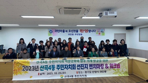 [금요저널] 부평구 산곡4동 주민자치회는 지난 25일 안양시 귀인동 주민자치회를 방문해 선진지 벤치마킹 및 워크숍을 진행했다.