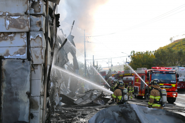 [금요저널] 용인소방서는 금일 12시01분 처인구 모현읍 소재의 한 창고에서 불이나 총력 대응을 펼쳤다고 밝혔다.