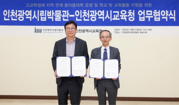 [금요저널] 인천광역시교육청은 인천광역시립박물관과 고교학점제 지역 연계 꿈이음대학 운영을 위한 업무협약을 인천시립박물관 해넘이방에서 27일 체결했다.