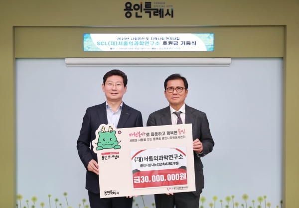 용인특례시청 시장실에서 열린 이날 전달식에는 이사장인 이상일 용인특례시장을 비롯해 이경률 서울의과학연구소 총괄의료원장 등 관계자들이 참석했다.