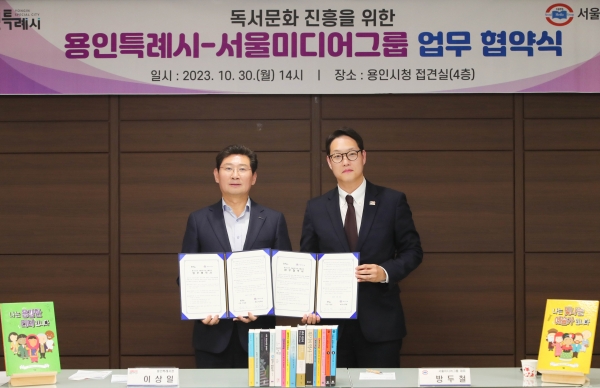 이상일 용인특례시장은 “시민을 위해 신간 도서를 기증하고 오늘 협약식을 통해 앞으로 많은 협력과 지원 활동을 펼치게 될 ㈜서울미디어그룹에 감사의 마음을 전한다”며 “대한민국에서 가장 책을 사랑하고 높은 독서량을 자랑하는 용인특례시민들에게 ㈜서울미디어그룹의 도서 기증은 많은 도움이 될 것으로 기대한다”고 말했다.