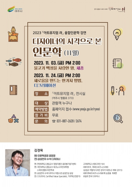 [금요저널] 여주시 미술관 ‘아트뮤지엄 려’는 2023년 11월 ‘아트뮤지엄 려’ 전시실에서 융합인문학 강연을 진행한다.