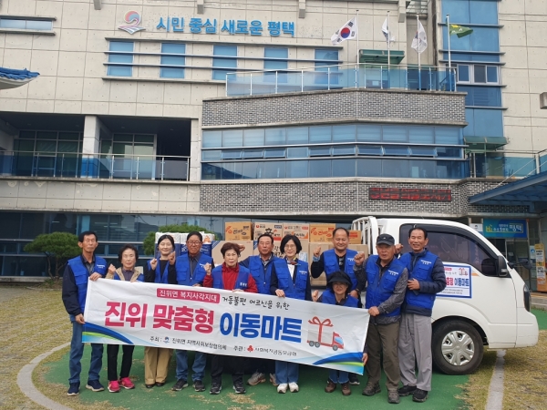 진위 맞춤형 이동마트 사업은 매달 관내 12개 마을을 대상으로 제철 과일 라면, 조미김 등 식료품을 비롯해 휴지, 파스 등 다양한 물품을 트럭에 싣고 나가, 거동 문제로 시내에서 장을 보기 어려운 홀몸 어르신 및 복지 취약계층 가구가 무료로 물품 구매할 수 있도록 지원하는 사업이다.