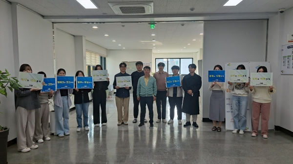[금요저널] 화성시 동부출장소가 31일 MZ세대 주니어보드와 함께 조직문화 혁신과 건강한 직장분위기 조성을 위한 캠페인을 진행했다.