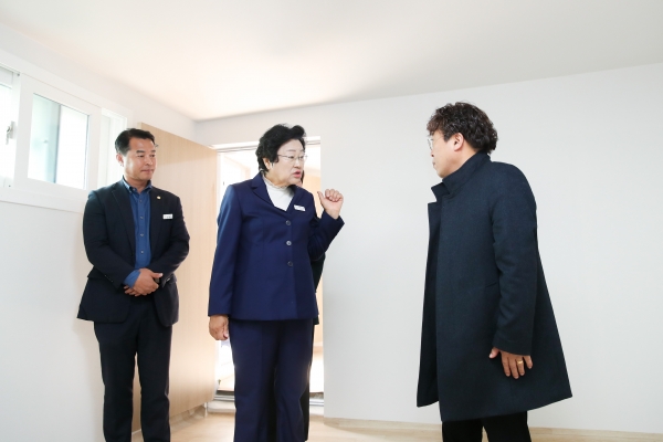 한편 김경희 이천시장은 준공식이 끝난 후 조건 없는 사랑으로 이웃을 돌봐준 참여단체 및 고당 1리 주민들의 손을 일일이 어루만지면서 감사하다는 말을 전했고 페인트칠 재능기부를 한 공무원들에게도 격려를 잊지 않았다.