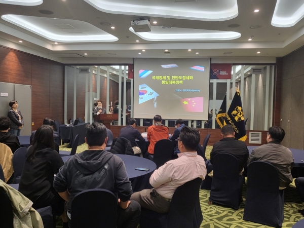 이번 워크숍에서는 ‘한반도와 국제 정세 및 통일대북정책의 방향’이라는 주제로 국가안보전략연구원의 안제노 책임연구위원의 강의가 진행됐다.