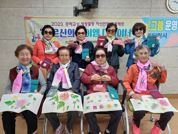 관고동 문해교실 학력인정 교실에서는 어르신들에게 다양한 특별활동 기회를 드리고자 실크 스카프 디자인작업을 시작으로 매트 디자인, 가방 디자인, 행주 디자인까지 다양한 기법을 활용해 다양한 체험 활동에 참여했다.