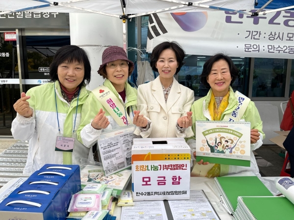 동은 상반기 기부 캠페인에 이어 하반기에는 만수2동 마을 축제에 참여해 희망 나눔 기부 캠페인 부스를 설치·운영했다.