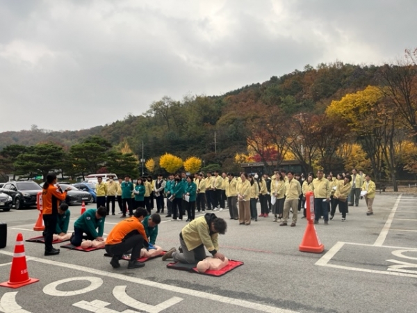 대피 후에는 동두천소방서의 협조로 응급환자에 대한 심폐소생술 등 응급처치 교육이 진행됐다.