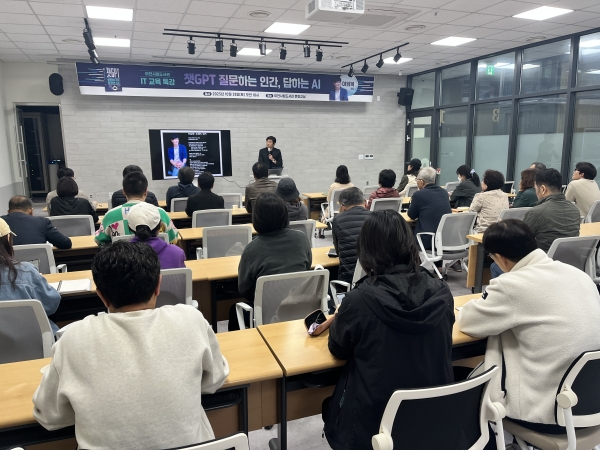 [금요저널] 이천시 시립도서관은 지난 10월 28일 IT 교육 특강으로 진행한 ‘챗GPT 질문하는 인간, 답하는 AI’를 많은 시민들의 참여 속에 성황리에 마무리했다.