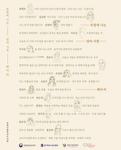 한편 에세이집 ‘부평에 사는 엄마 사람 혜자씨’ 도서와 직접 그린 삽화를 감상할 수 있는 특별전시가 갈산도서관과 문화공간 시소에서 진행될 예정이며 에세이집은 열람 및 대출할 수 있다.