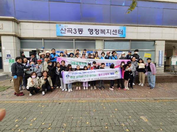‘환경 살리go 건강 살리go’ 플로깅데이는 마을 환경문제에 대한 주민들의 관심과 참여를 유도하기 위해 산곡3동 주민자치회 교육과 환경 분과에서 기획한 주민참여예산 사업이다.