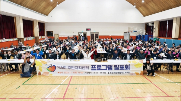 [금요저널] 미양면 및 미양면 주민자치위원회는 11월 4일 미양초등학교 체육관에서 관내 기관·사회단체장, 수강생, 주민 등 250여명이 참석한 가운데 ‘미양면 주민자치 프로그램 발표회’를 가졌다.