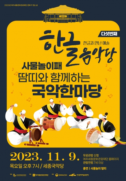 [금요저널] 여주세종문화관광재단이 오는 9일 문화가 있는 날의 일환으로 ‘한글음악당 – 장애예술 속 한글’을 세종국악당에서 개최한다.
