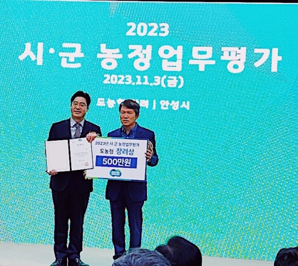 안성시는 도농형 그룹에서 장려상을 수상해 작년에 이어 3년 연속 농정업무 우수 시군으로 자리매김하게 됐다.