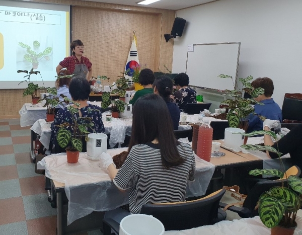 이번 교육은 시민들에게 반려 식물을 키우면서 정서를 함양하고 마음을 치유하기 위해 마련됐으며 ‘나도 식물을 잘 키울 수 있을까’라는 테마에 맞춰 지난 6월부터 실외 반려 식물 정원 가꾸기와 실내 공기정화 반려 식물 키우기로 나눠 운영하고 있다.