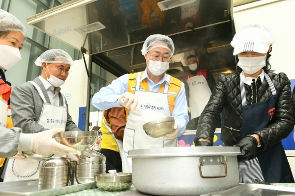 정명근 화성시장, 연예인 봉사단과 곰탕 나눔 행사 진행