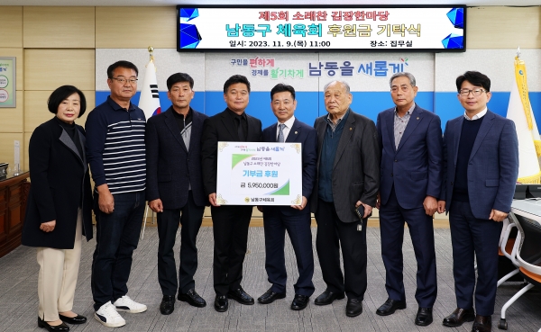 [금요저널] 인천시 남동구는 최근 구 체육회로부터 ‘제5회 남동구 소래찬 김장한마당’ 후원금 595만원을 전달받았다고 9일 밝혔다.