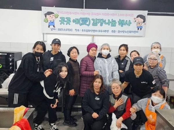 [금요저널] 동두천시 큰사랑노인복지센터 온누리봉사단은 지난 7일 ‘2023년 도민이 전하는 자원봉사 2차 지원사업’으로 진행한 김장김치 160개를 취약계층 이웃을 위해 후원했다.