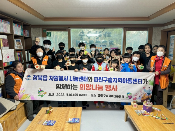 이날 행사는 자원봉사나눔센터와 청북 파란구슬 지역아동센터 그리고 청북 노인주간보호센터 등 3개 기관이 함께 했으며 자원봉사나눔센터와 파란구슬 지역아동센터에서 다육식물 화분을 만들고 노인주간보호센터에서 어르신들에게 전달하는 방식으로 진행됐다.