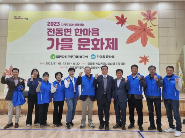 [금요저널] 세종특별자치시 전동면 주민자치회와 전동면사무소가 지난 11일 개최한 ‘전동면 한마음 가을 문화제’가 주민 200여명의 참여 속에 성황리에 종료됐다.