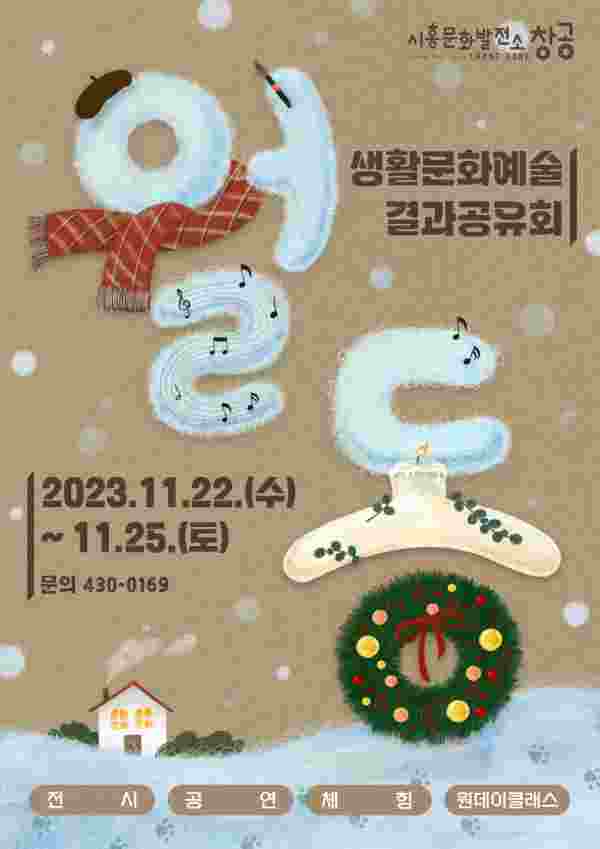 [금요저널] 시흥시가 오는 22일부터 25일까지 나흘간 시흥문화발전소 창공에서 겨울을 주제로 한 ‘2023 생활문화예술 결과공유회 월동’을 운영한다.