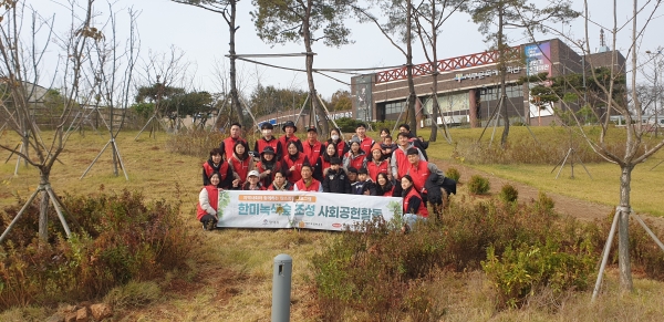 [금요저널] 평택시는 지난 11일 안중읍 학현리 495-7번지 일원에서 한미약품가 참여해 조성한 참여의숲 준공식 행사를 진행했다.