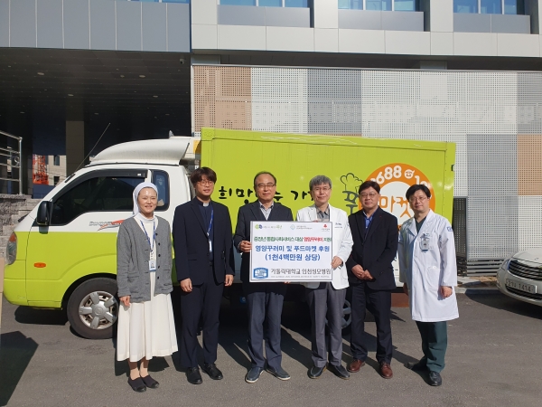 이번 후원 물품은 가톨릭대학교 인천성모병원 내 교직원단체인 인천성모자선회에서 교직원들의 회비로 마련된 것으로 영양든든꾸러미에는 햄, 참치, 라면, 밑반찬 등의 생필품이 담겨있다.