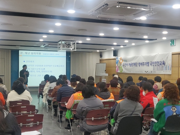 [금요저널] 오산시가 지난 10일 시청 물향기실에서 자율방재단원을 대상으로 생애주기별 안전교육을 실시했다.