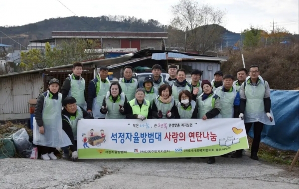 한편 석정자율방법대에서는 10년째 추진하고 있는 연탄 나눔 외에도 폭우 대비 우수받이 점검, 독거 어르신 주거환경 개선, 내혜홀광장 정화작업 등 다양한 활동을 통해 더불어 사는 풍요로은 안성을 만들기 위해 노력하고 있다.