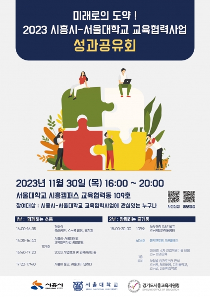 [금요저널] 시흥시가 오는 30일 서울대학교 시흥캠퍼스에서 ‘2023년 시흥시-서울대 교육협력사업 성과공유회’를 개최한다.