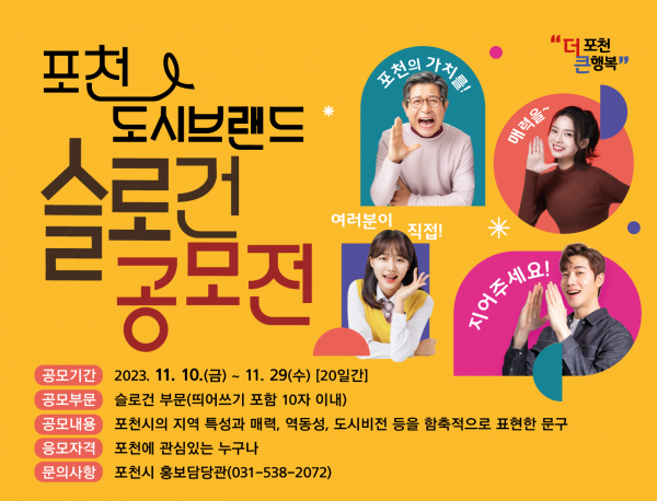 [금요저널] 포천시는 오는 11월 29일까지 ‘포천시 도시브랜드 개발’을 위한 슬로건 공모전을 개최한다.