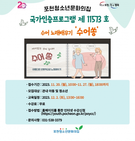 포천청소년문화의집, 2023년 수련활동 국가인증프로그램 수어놀이터 ‘수어쏭’ 참가자 모집
