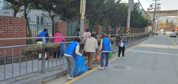[금요저널] 의정부시 장암동주민센터는 11월 14일 깨끗한 동네 만들기의 일환으로 장암동 통장협의회와 함께 가로변 낙엽 및 무단투기 쓰레기 청소를 실시했다.
