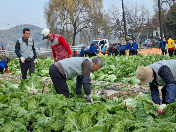 배추 수확 행사에는 농촌지도자 회원과 처음처럼 봉사회 등 관내 7개 지역 봉사단체 40여명이 참석해 구슬땀을 흘렸다.