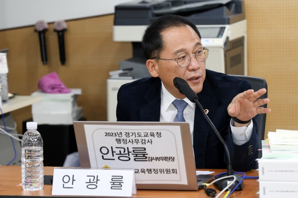 [금요저널] 경기도의회 교육행정위원회 안광률 부위원장은 15일 경기도교육복지종합센터 등 경기도교육청 직속기관에 대한 2023년도 행정사무감사에서 근무지에 따라 교직원을 차별하는 경기도교육복지종합센터의 ‘교직원 후생복지 지원사업’ 운영 실태에 대해 강력히 개선을 촉구했다.