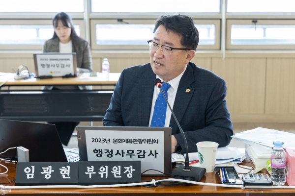[금요저널] 경기도의회 문화체육관광위원회 임광현 부위원장은 16일 경기도체육회 행정사무감사에서 고양, 용인 등 민선 체육회장과 지자체장의 갈등 사례를 소개하며 갈등 예방을 위한 경기도체육회 차원의 소통 강화방안 마련을 주장했다.