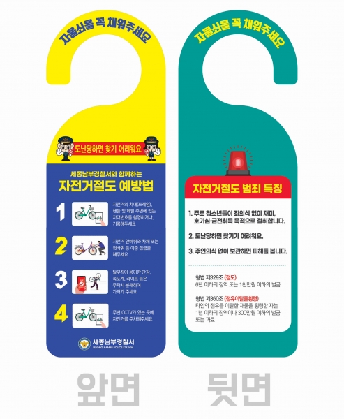 [금요저널] “자전거 절도 예방을 위해 자물쇠를 채워 주세요”세종시 행정중심복합도시에서 이런 문구가 적힌 현수막이 걸려 있는 것을 심심치 않게 볼 수 있다.