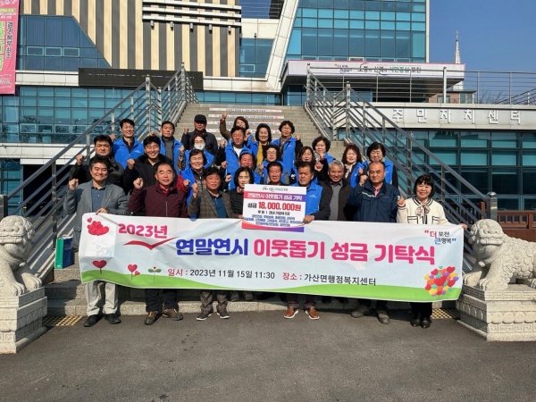 [금요저널] 가산면 행정복지센터는 지난 15일 가산면 관내 기업체에서 가산면 행정복지센터를 방문해 관내 저소득층을 위한 성금 1천8백만원을 기탁했다고 밝혔다.