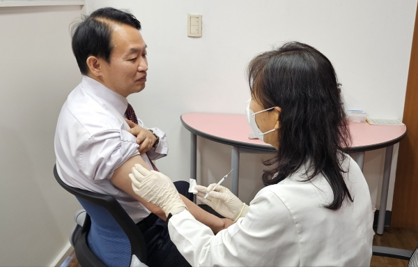 김찬진 동구청장은 최근 코로나19 예방 접종을 했고 김진서 부구청장과 국장급 간부 공무원들도 예방접종에 동참했다.