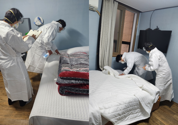 숙박업의 경우는 1인 사용 시마다 객실 요·이불·베개 등 침구의 포와 수건 세탁 여부를 확인하고 목욕장업의 경우는 탈의실·옷장·목욕실 등 청소 매일 1회 이상 실시 여부를 점검한다.