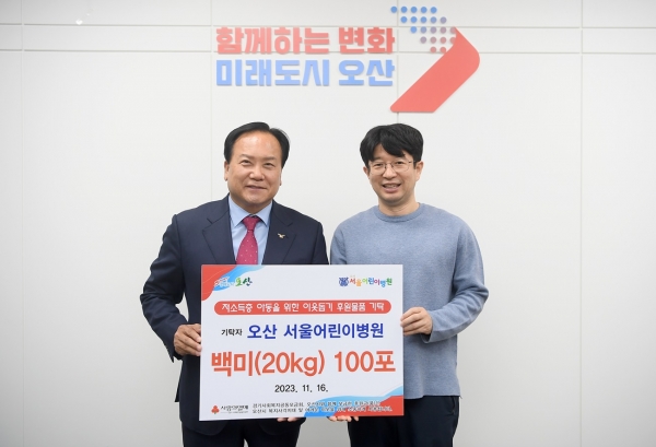 [금요저널] 오산 서울어린이병원이 지난해에 이어 올해에도 오산시 취약계층 아동을 위해 백미 20kg 100포를 기탁했다.