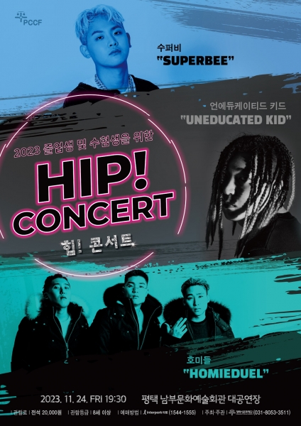 [금요저널] 평택시문화재단에서는 오는 11월 24일 평택 남부문화예술회관 대공연장에서 2023 졸업생 및 수험생을 위한 청소년 ‘힙’ 콘서트를 준비해 수고한 수험생 및 새 학년을 위해 졸업하는 학생들의 스트레스를 풀어줄 찐텐 콘서트를 기획했다.