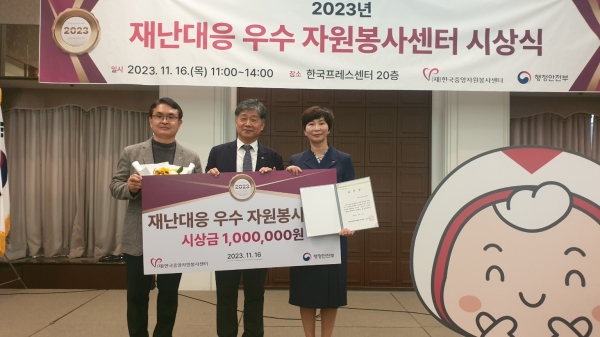 한국중앙자원봉사센터와 행정안전부는 재난대응 자원봉사활동 추진을 통해 지역사회 위기 극복에 기여했다.으로써 재난현장 자원봉사활동의 영향력과 중요성에 대한 인식을 높인 자원봉사센터를 재난대응 자원봉사활동 우수센터로 선정해 시상하고 있다.